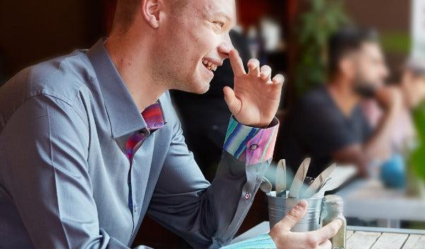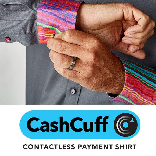 A CashCuff® shirt allows you to make contactless payments directly from the cuff of your shirt. No phone, no wallet and no problems. Read more about the CashCuff here.